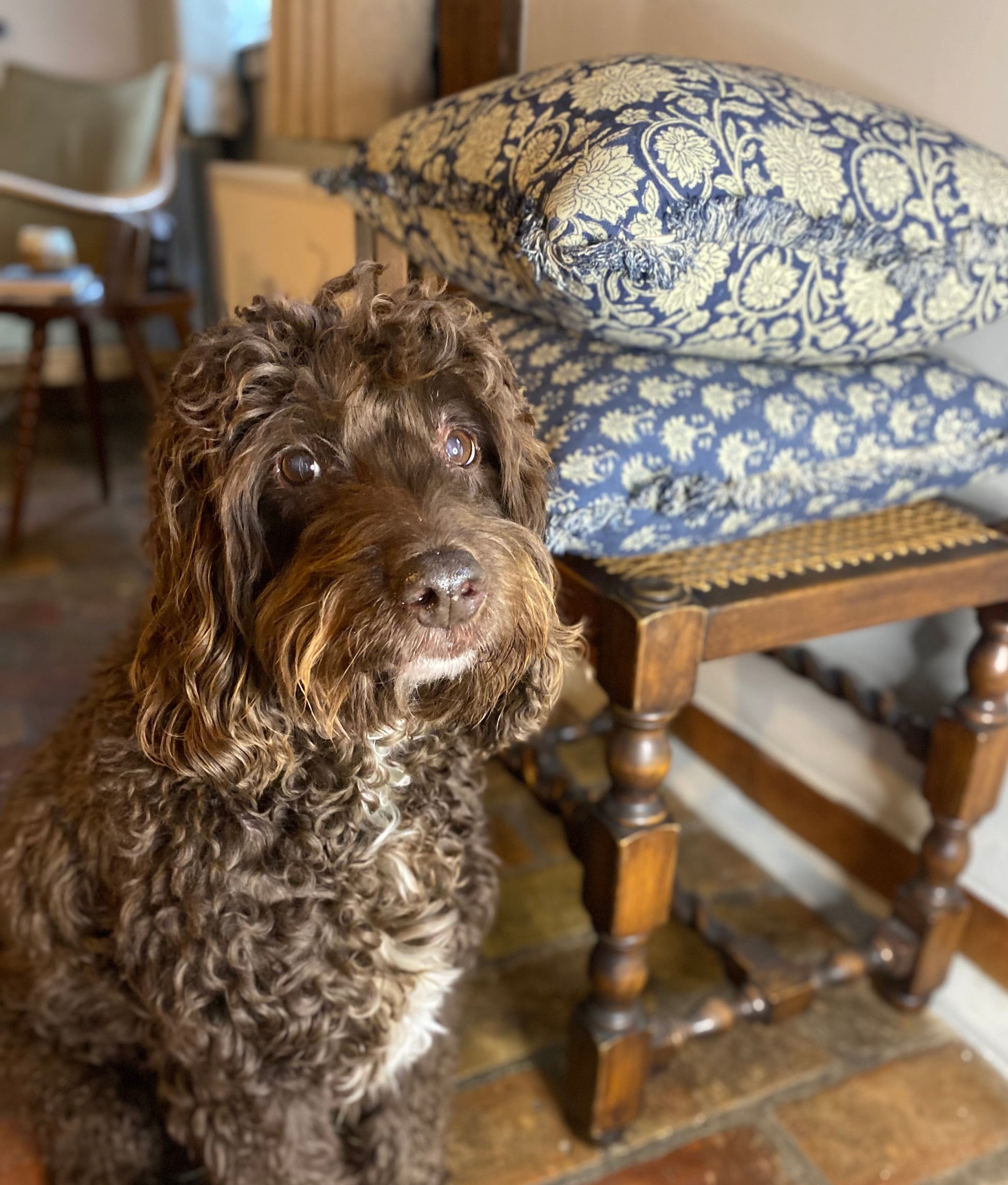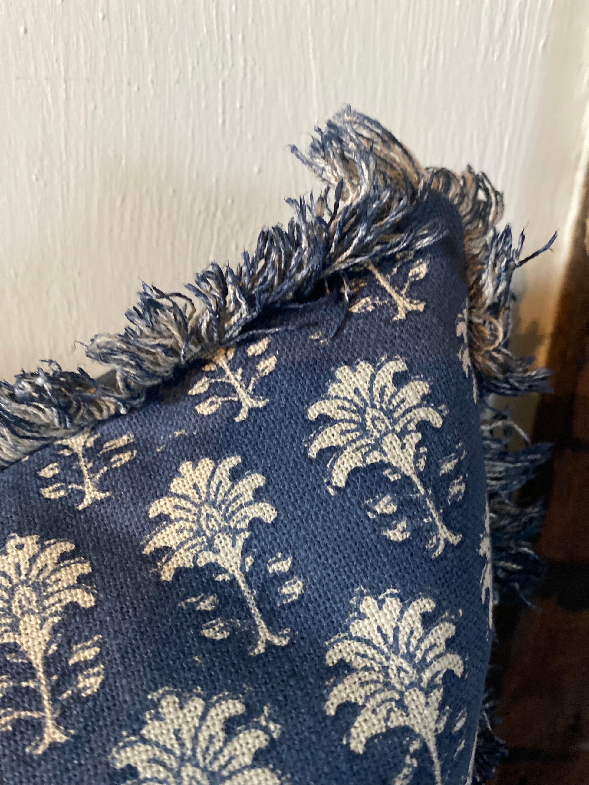 Indian style block print feather filled cushion. Perfect for a slouchy sofa or outside on your summer bench. Mix with our other block print cushions or a nice stripy one!